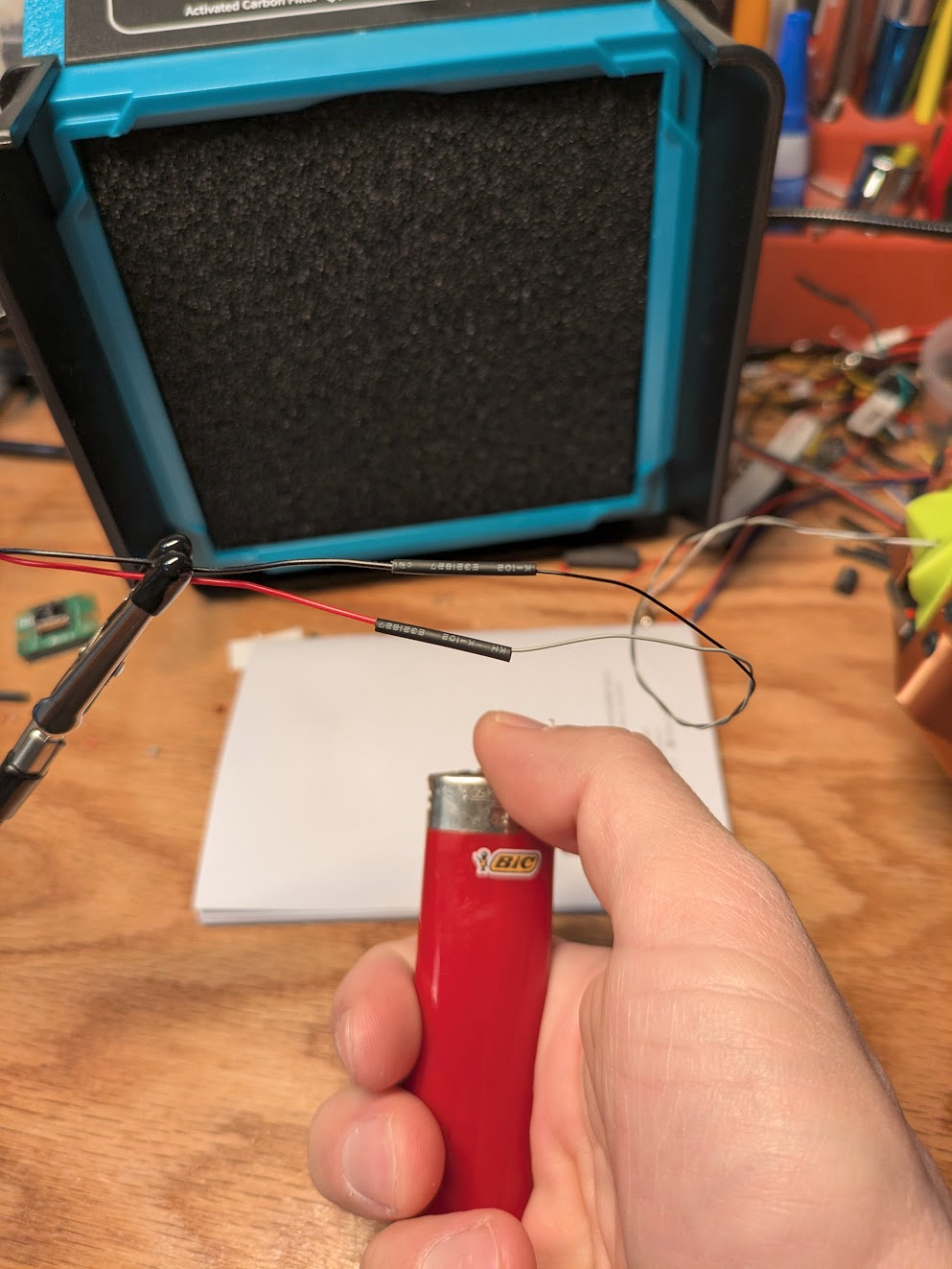 - Soldering station with helping hands and a magnifier.