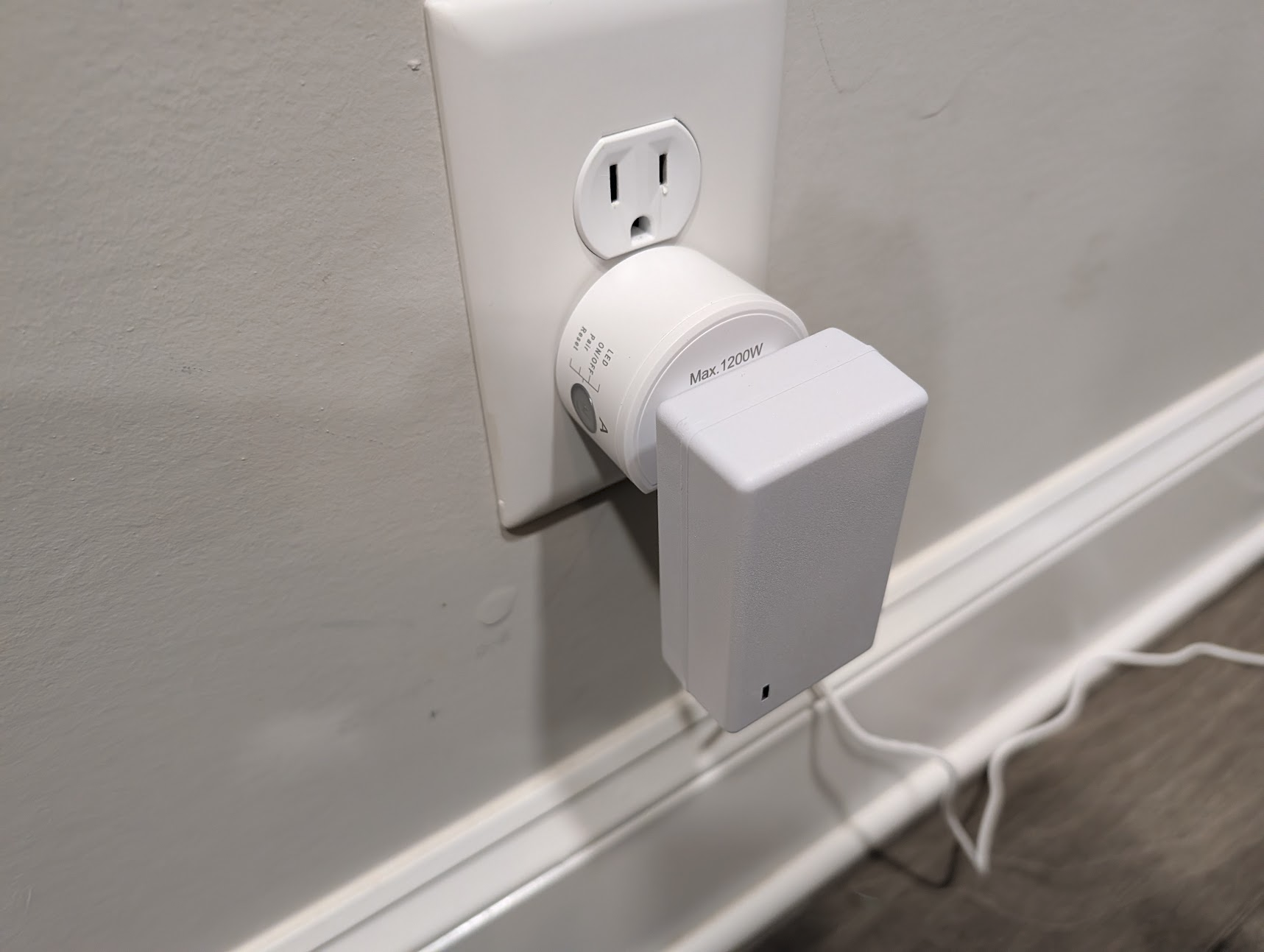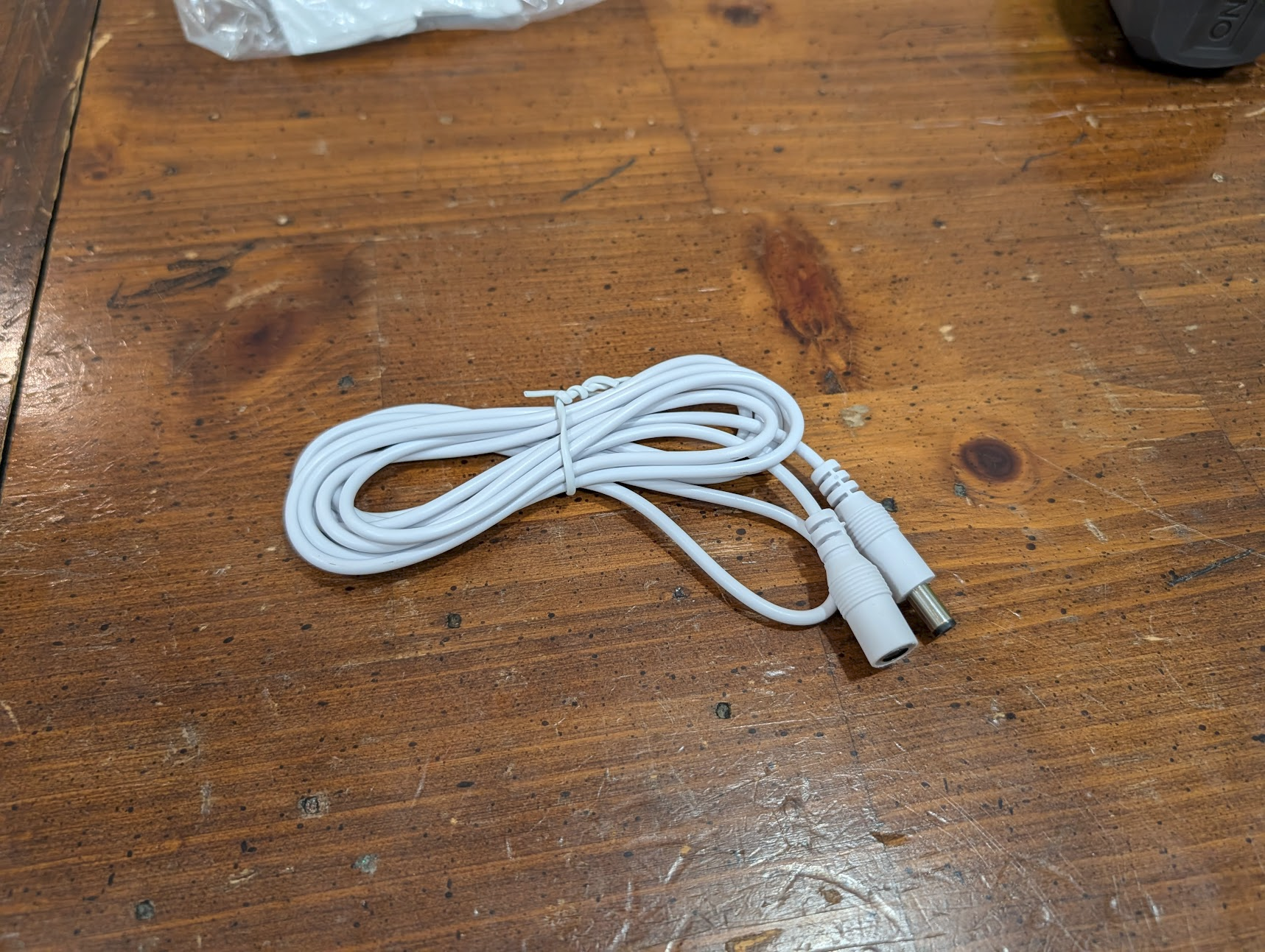 Plug the DC barrel jack extension cord into the bottom of the anchor, and the power supply into that. You can make it look nicer by taping it into the corner of the wall.