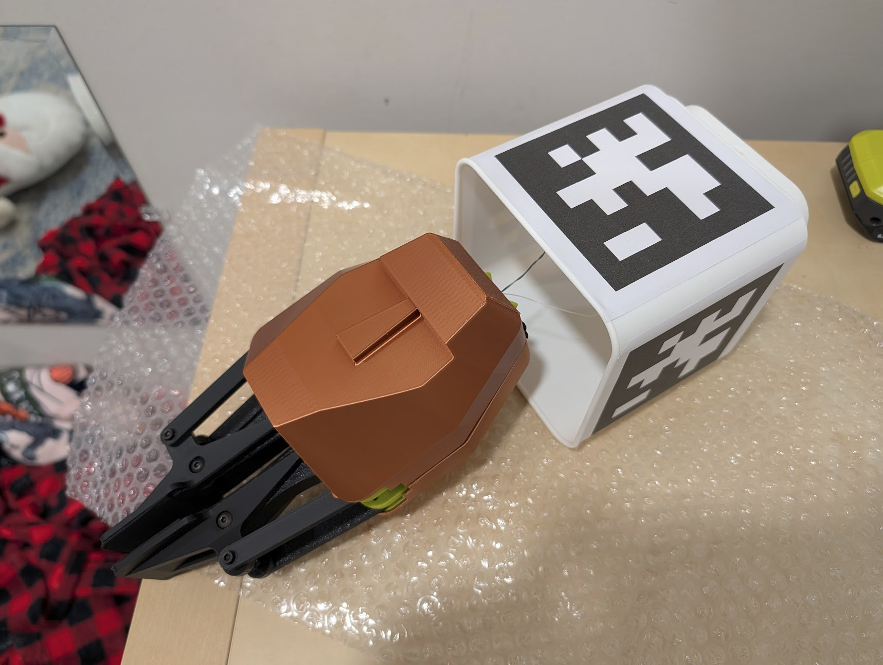Power on all the anchors using the "all on" button on your outlet remote. the gripper's fingers may suddenly move to the neutral position, this is normal. Open the control panel. Wait for all components to be discovered, connected, and for video to come online. Select "Auto tension" from the main menu.